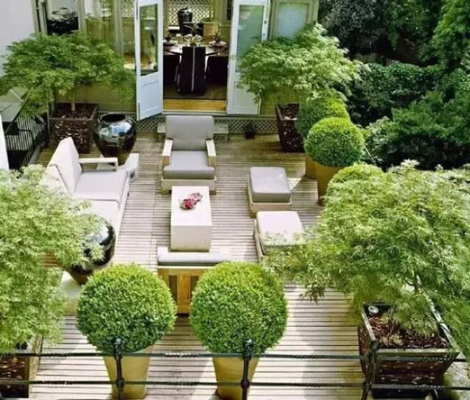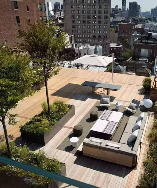 隨著人們生活條件的日益提高,多層階梯式公寓和別墅的出現(xiàn),使屋頂花園逐漸走入了人們的家庭生活。該類型的屋頂花園建于自家天臺(tái)或露臺(tái)上,是家人的朋友享用的私人空間,通常面積與荷載較小、布置精美、生活化,即可作為休閑場(chǎng)所,也可作為晾衣養(yǎng)花的功能性場(chǎng)所。